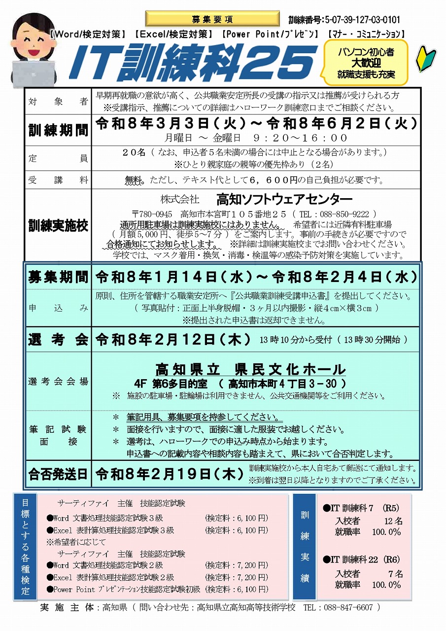 公共職業訓練 IT訓練科25 募集開始いたしました!(2023年1月24日まで)