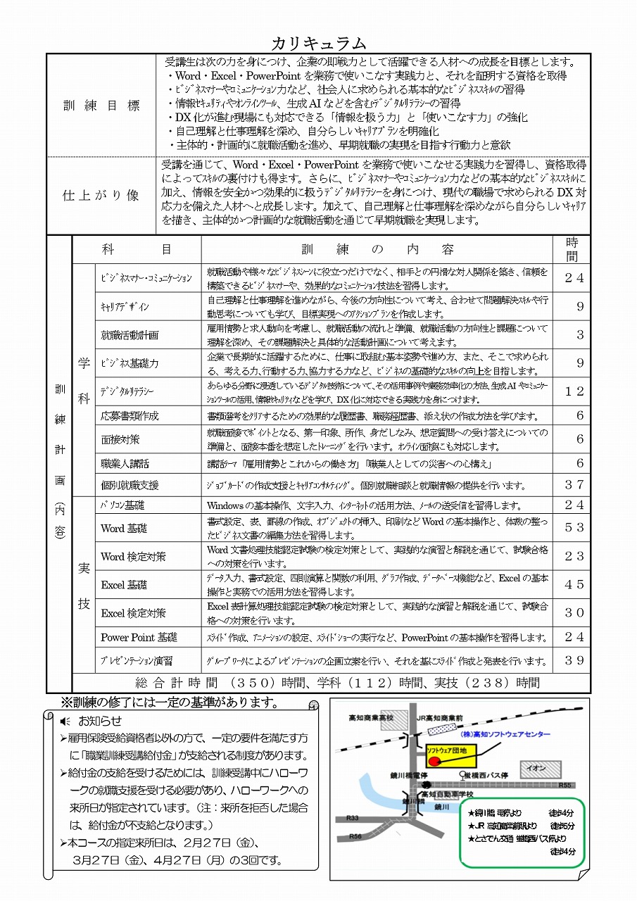 求職者支援訓練 短期集中 ビジネスパソコン基礎科 募集開始します!(2023年12月12日まで)
