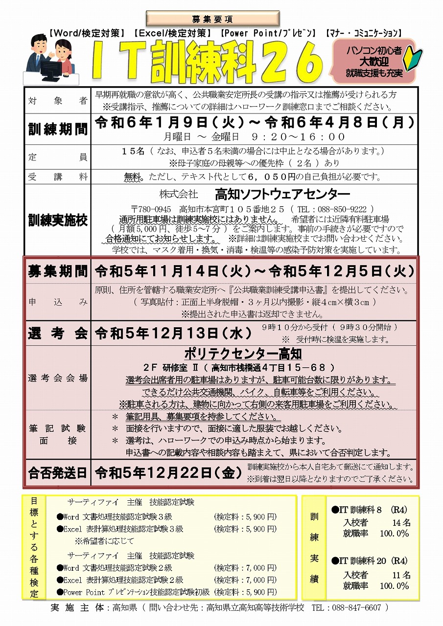 公共職業訓練 IT訓練科26 募集開始いたしました!(2023年12月5日まで)