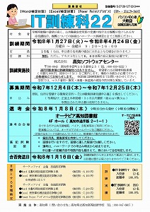 公共職業訓練 IT訓練科8 募集開始いたしました!(2022年06月20日まで)