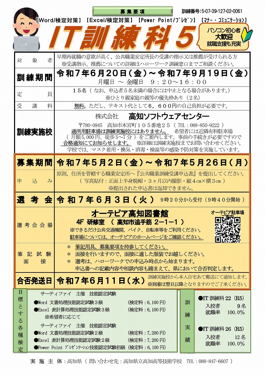 公共職業訓練 IT訓練科7 募集開始いたしました!(2023年4月28日まで)