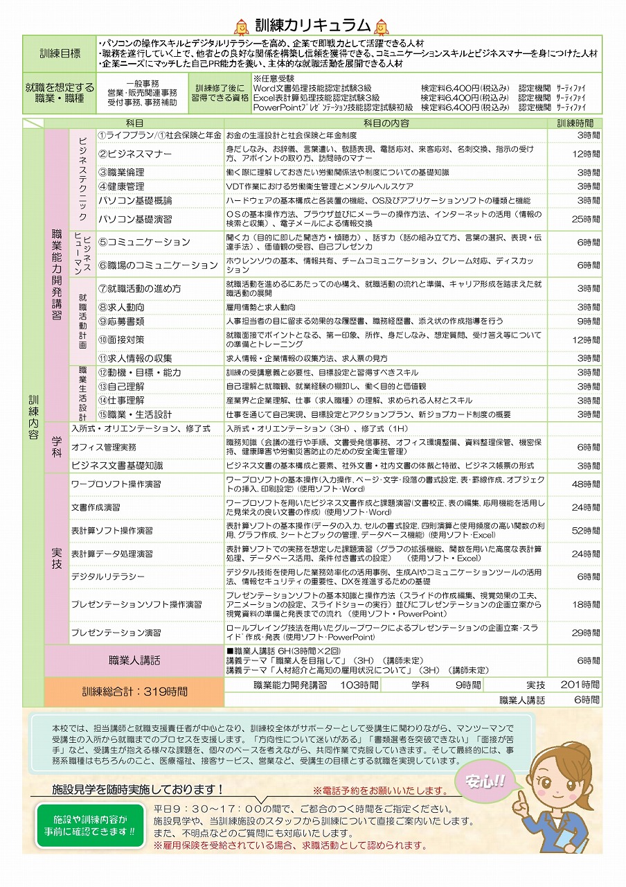求職者支援訓練 いちから学ぶ ビジネスパソコン基礎科 募集開始いたしました!(2023年06月06日まで)
