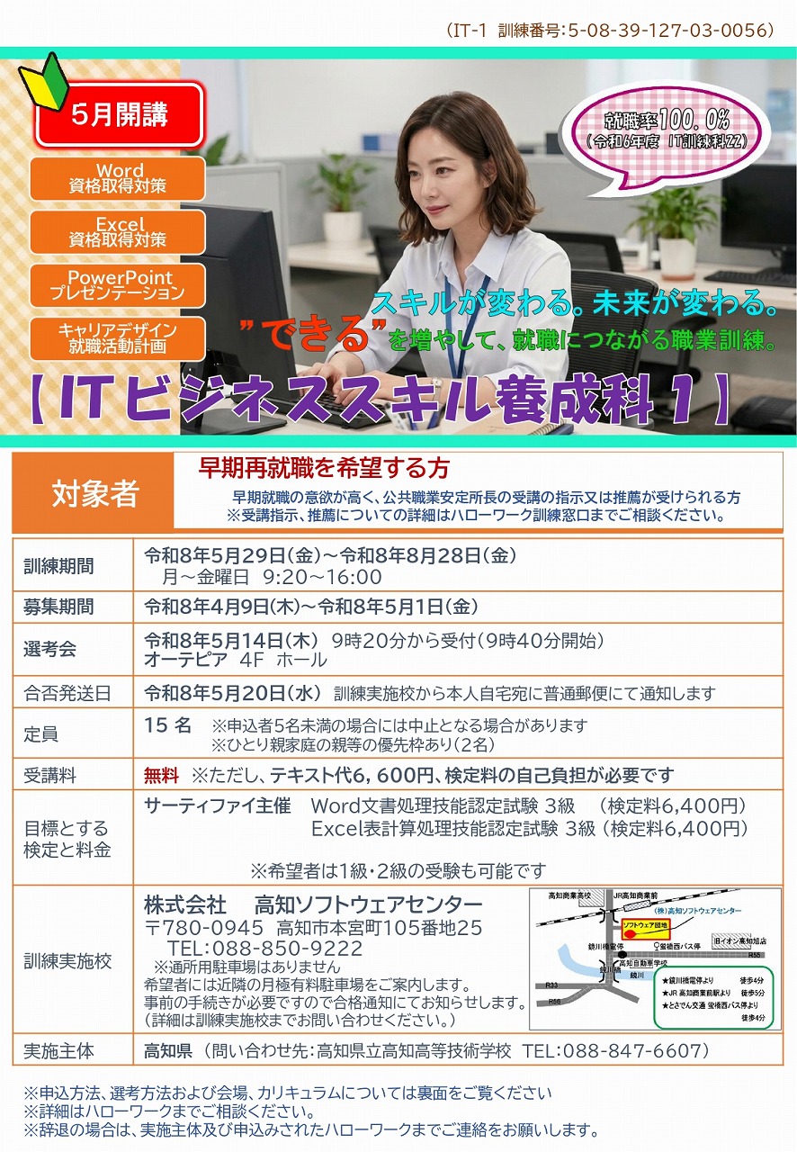 ITビジネススキル養成科 募集開始!(2026年5月1日まで)