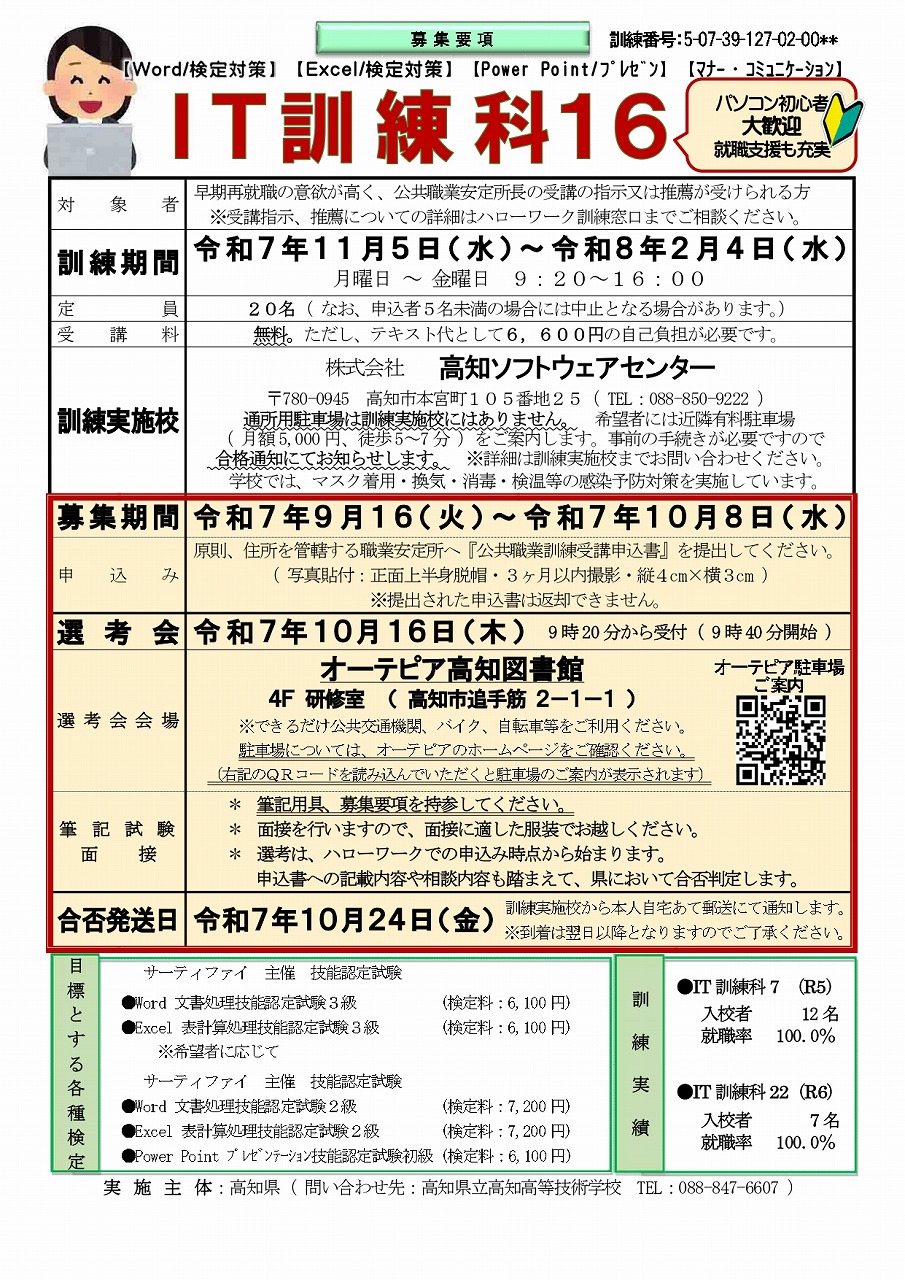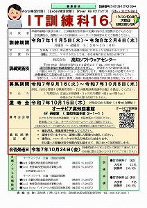 公共職業訓練 IT訓練科16 募集開始いたしました!(2023年06月06日まで)