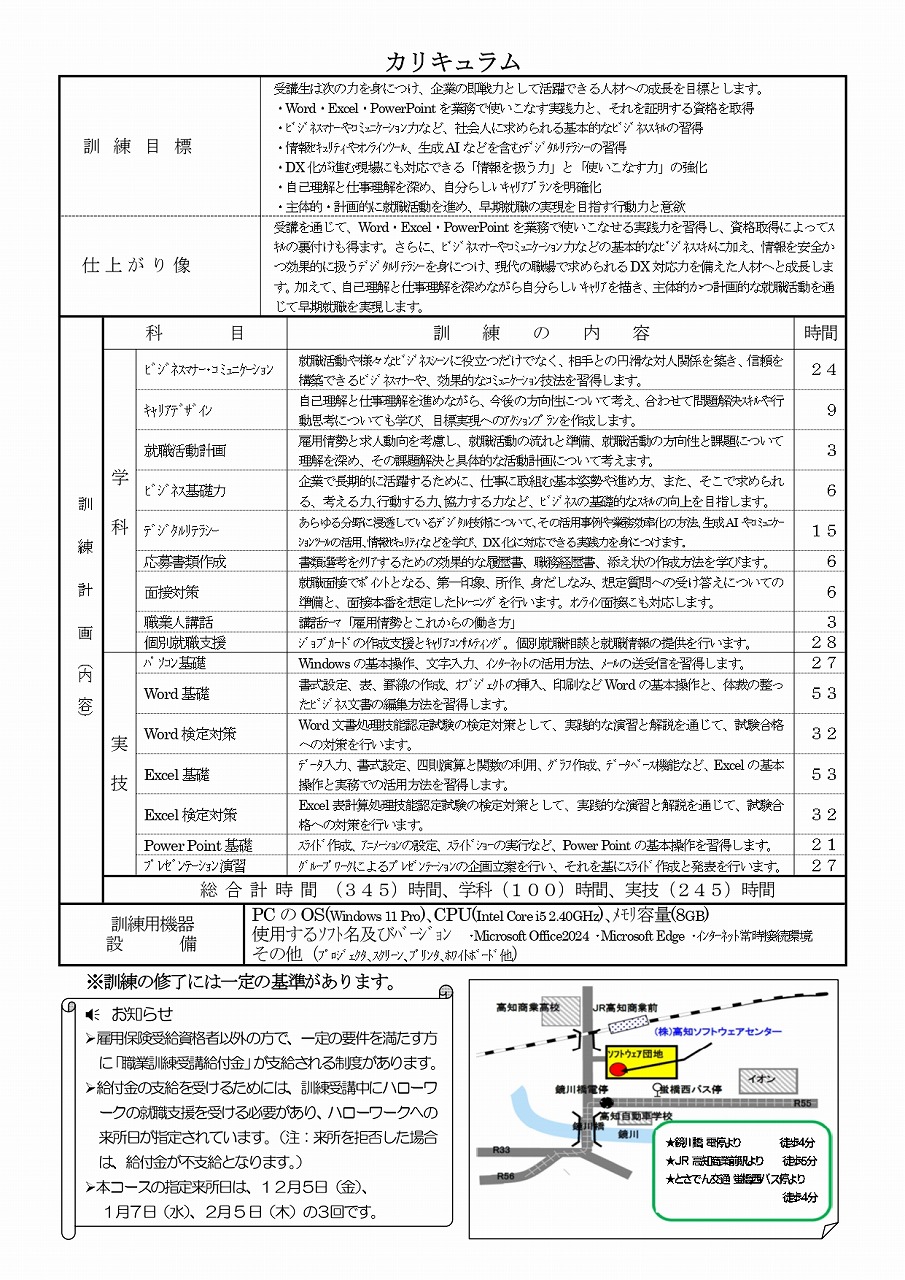 求職者支援訓練 短期集中 ビジネスパソコン基礎科 募集開始します!(2023年12月12日まで)